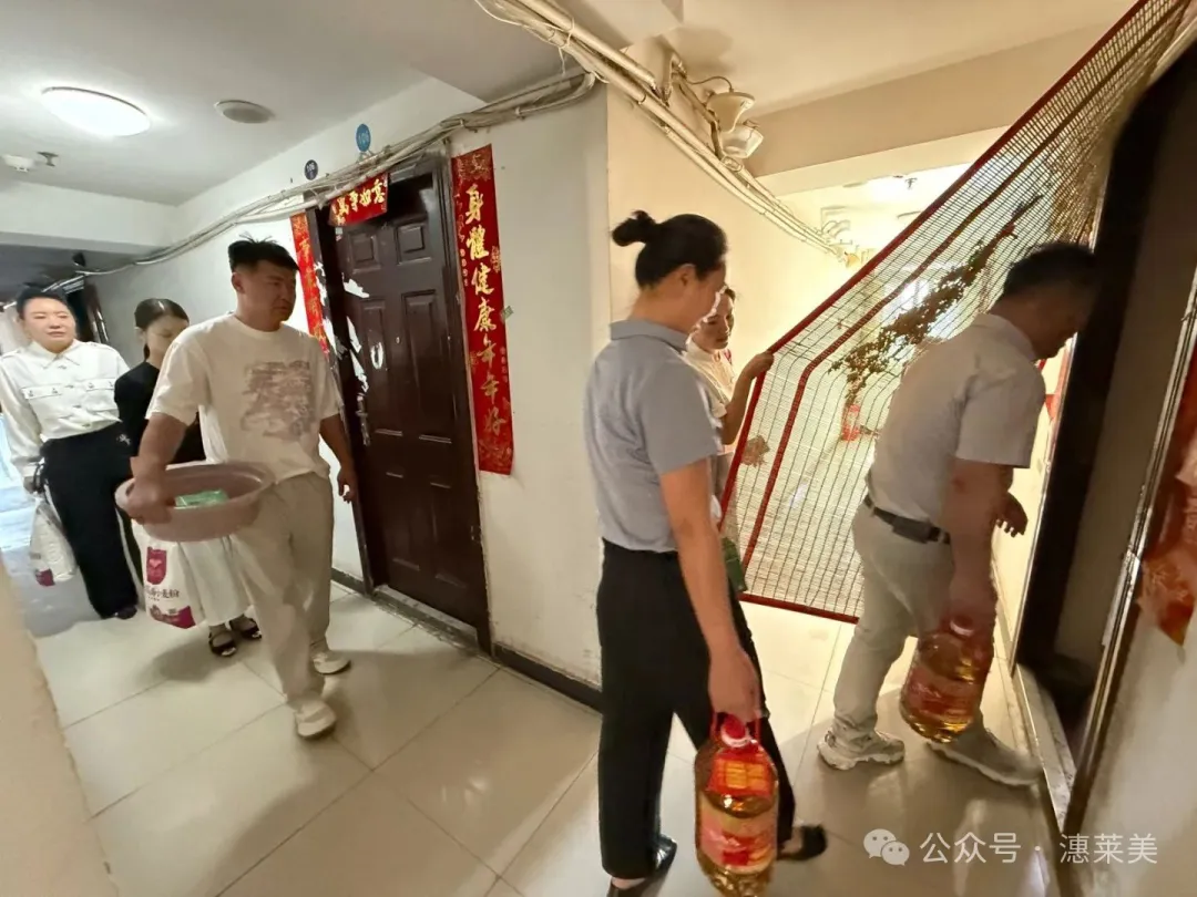 在牡丹江地区,潓莱美另一支慰问小队在市场部徐总的带领下,满载着关怀,将新鲜肉类、优质大米、食用油、洗衣液等生活必需品逐一装车。专程探望社区行动不便、需要关爱的老人,用实际行动传递温暖。